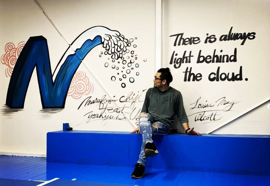 工場の壁に描かれたこの壁画は、日々ものづくりに向き合う空間に、静かな前向きさをもたらしているように感じられます。大きく描かれた「N」の文字からあふれ出すような波の表現は、エネルギーや流れを象徴しているようにも見え、仕事の現場に動きとリズムを生み出しています。そして壁面に添えられた「There is always light behind the cloud.」という言葉は、雲の向こうには必ず光があるという希望のメッセージとして、見る人の心に穏やかに響きます。日々の作業の中では、困難や迷いを感じる瞬間もあるかもしれませんが、この言葉と絵は、前を向いて進む力をそっと思い出させてくれる存在のようです。機能的になりがちな工場の空間に、思想や物語が静かに息づいていることが、この壁画の魅力だと感じられます。