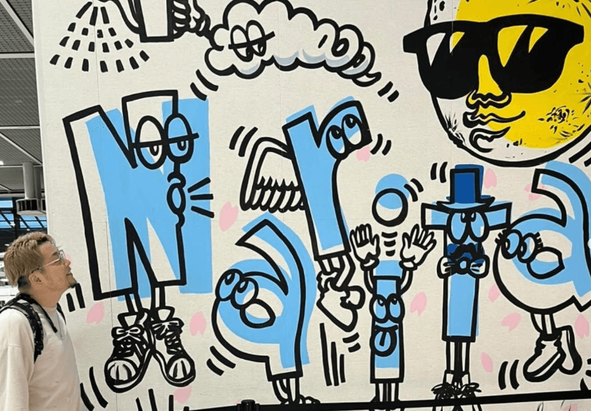 「Narita」の文字を個性豊かなキャラクターとして表現することで、場所のアイデンティティを視覚的に伝えています。